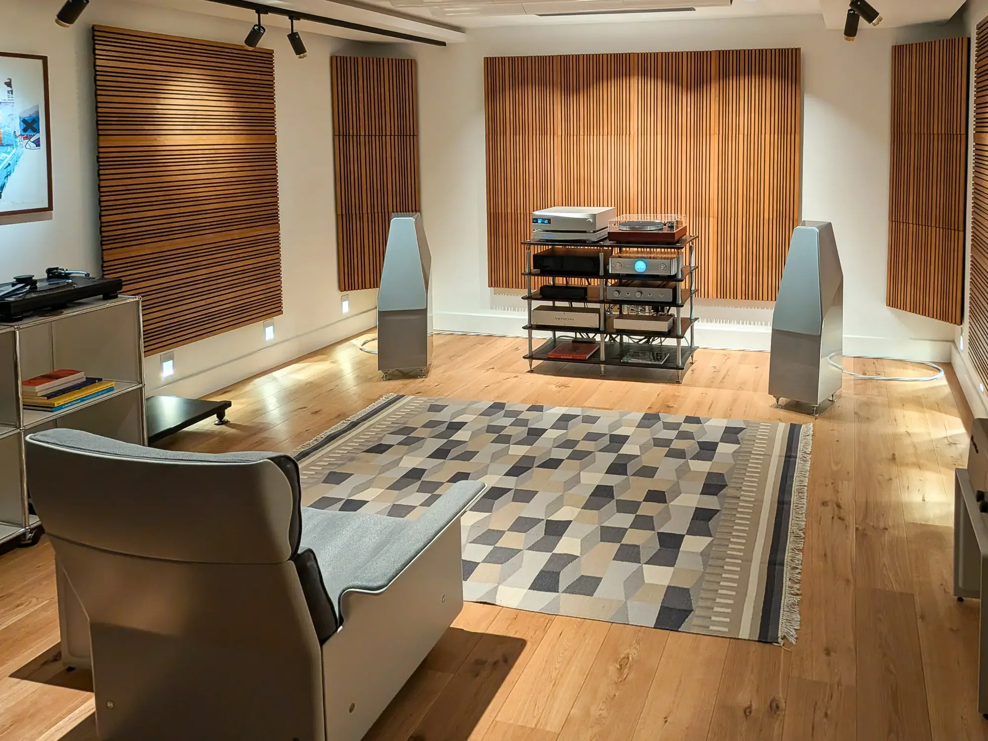 Lights dimmed, ready for a demo in our listening room